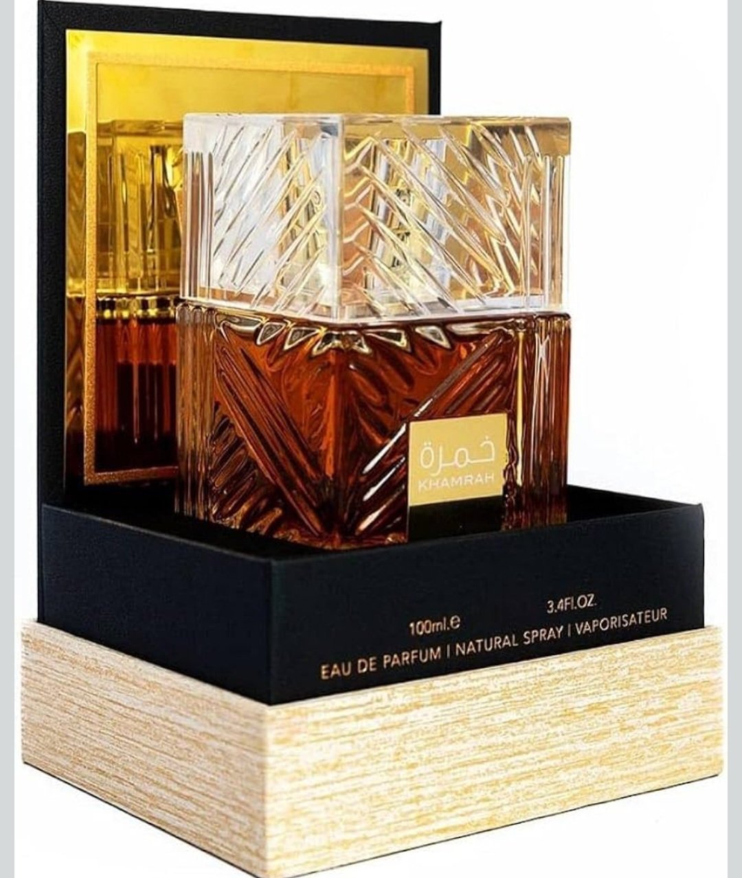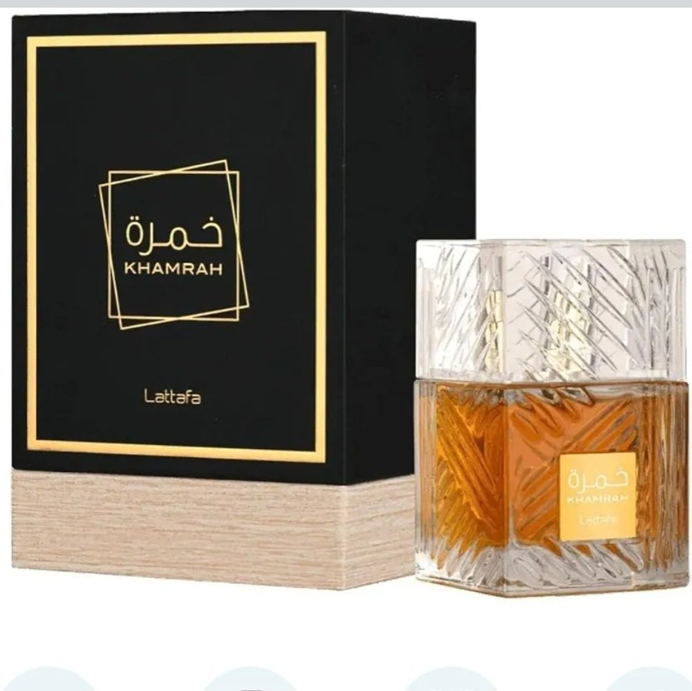 Lattafa Khamrah is a luxurious oriental-spicy unisex perfume that combines precious spices, the warmth of woody notes and the softness of vanilla. The fragrance is released by the Arab luxury perfume brand Lattafa Perfumes and comes in a luxurious crystal bottle. The top accord of Khamrah is the citrusy freshness of bergamot framed by the warm, velvety spice of cinnamon and refined clary sage. The heart of the perfume resonates with the delightful creamy smell of praline, melting in a fragrant haze of sweet fruity notes and tuberose floral nuances. Whereas the base of Lattafa Khamrah delivers a sumptuous aromatic trail that blends the sensual sweetness of vanilla with spicy precious woods, sweet smoky oud, smoky aromatic myrrh, spicy tonka bean and vanilla resinous benzoin, shimmering softly in the beams. refined amber.